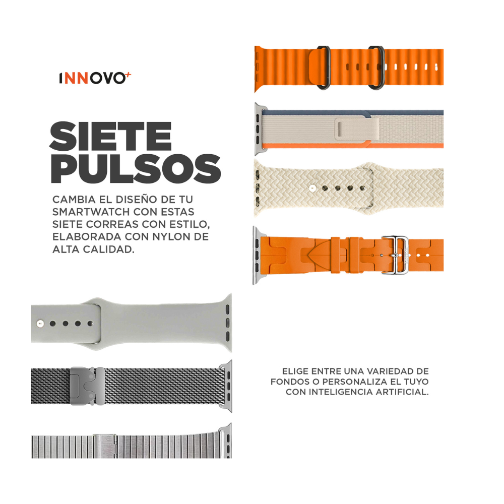 7 correas premium incluidas (nylon, silicona, deportiva, metálica)