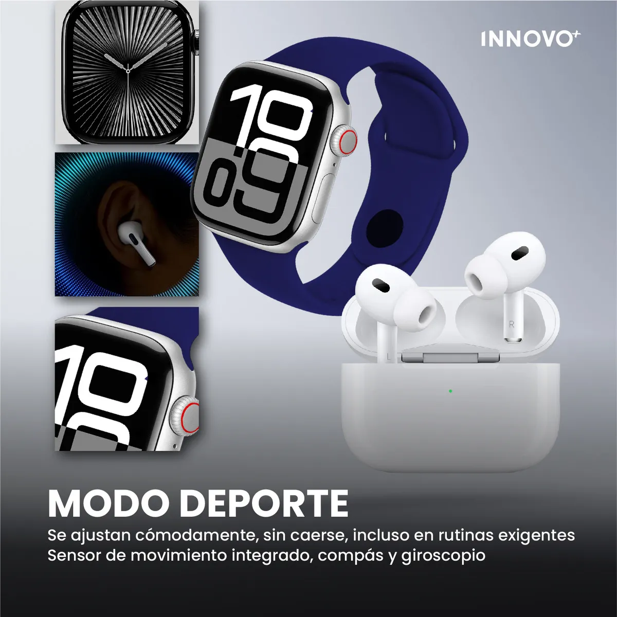 ¿Buscas el equilibrio perfecto entre tecnología, deporte y elegancia? El Combo ACE-20 ha sido diseñado para quienes no se detienen. Unimos la potencia del Smartwatch Watch 10 con la pureza de sonido de los AirPods de 2da generación para ofrecerte una experiencia 360°.