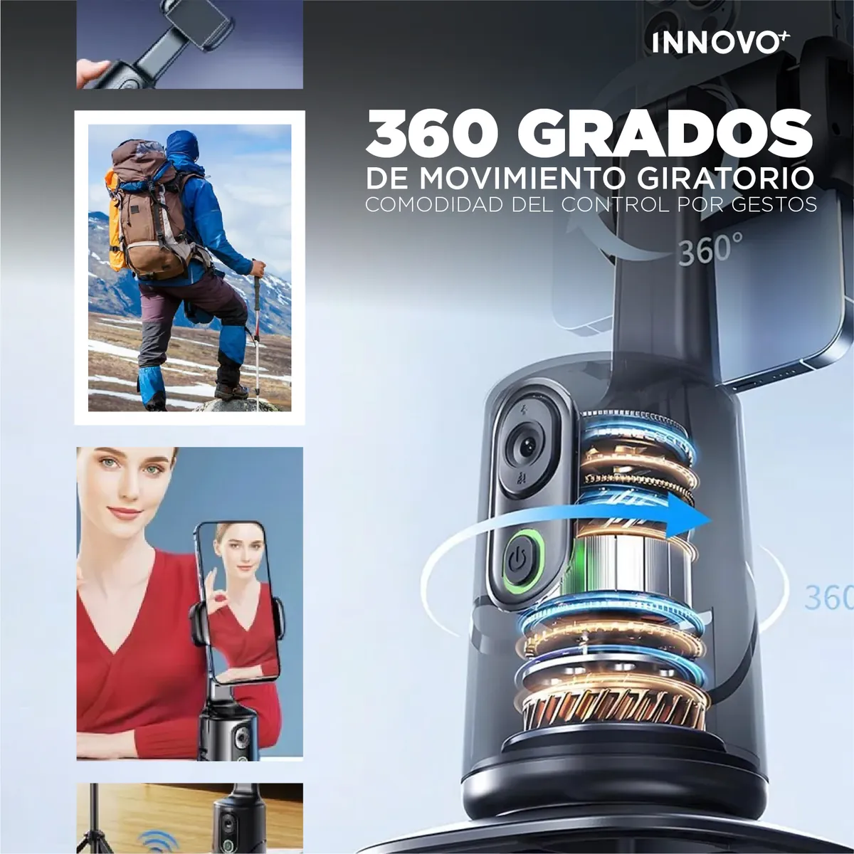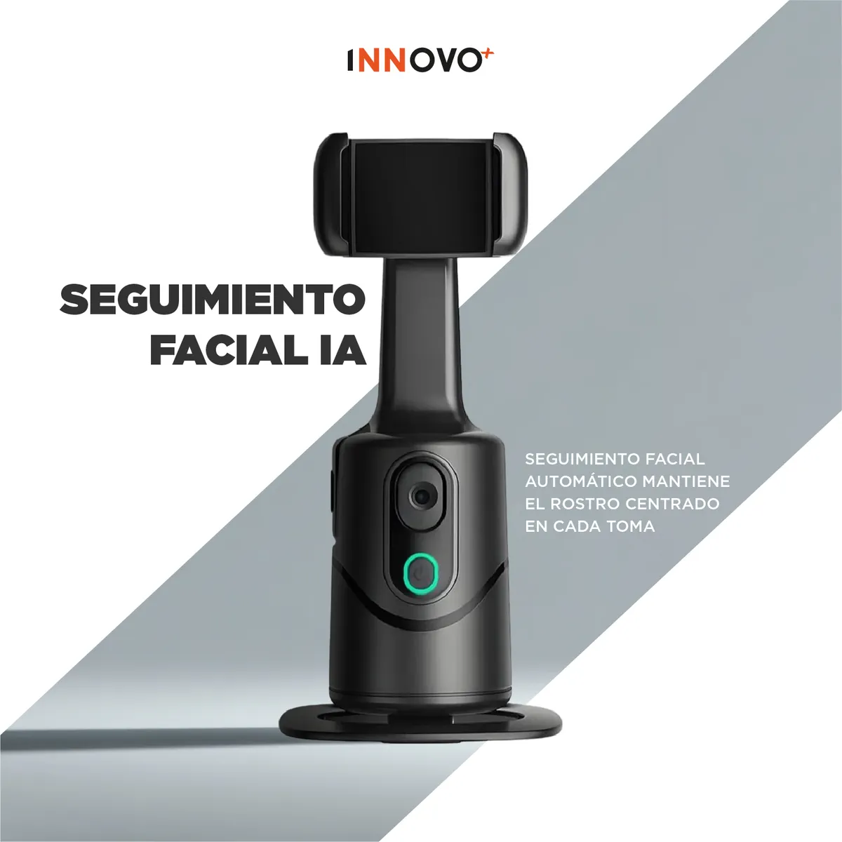 Este increíble soporte selfie inteligente con IA y giro automático 360° sigue tus movimientos en tiempo real, manteniendo tu rostro siempre centrado y enfocado, sin importar hacia dónde te muevas.