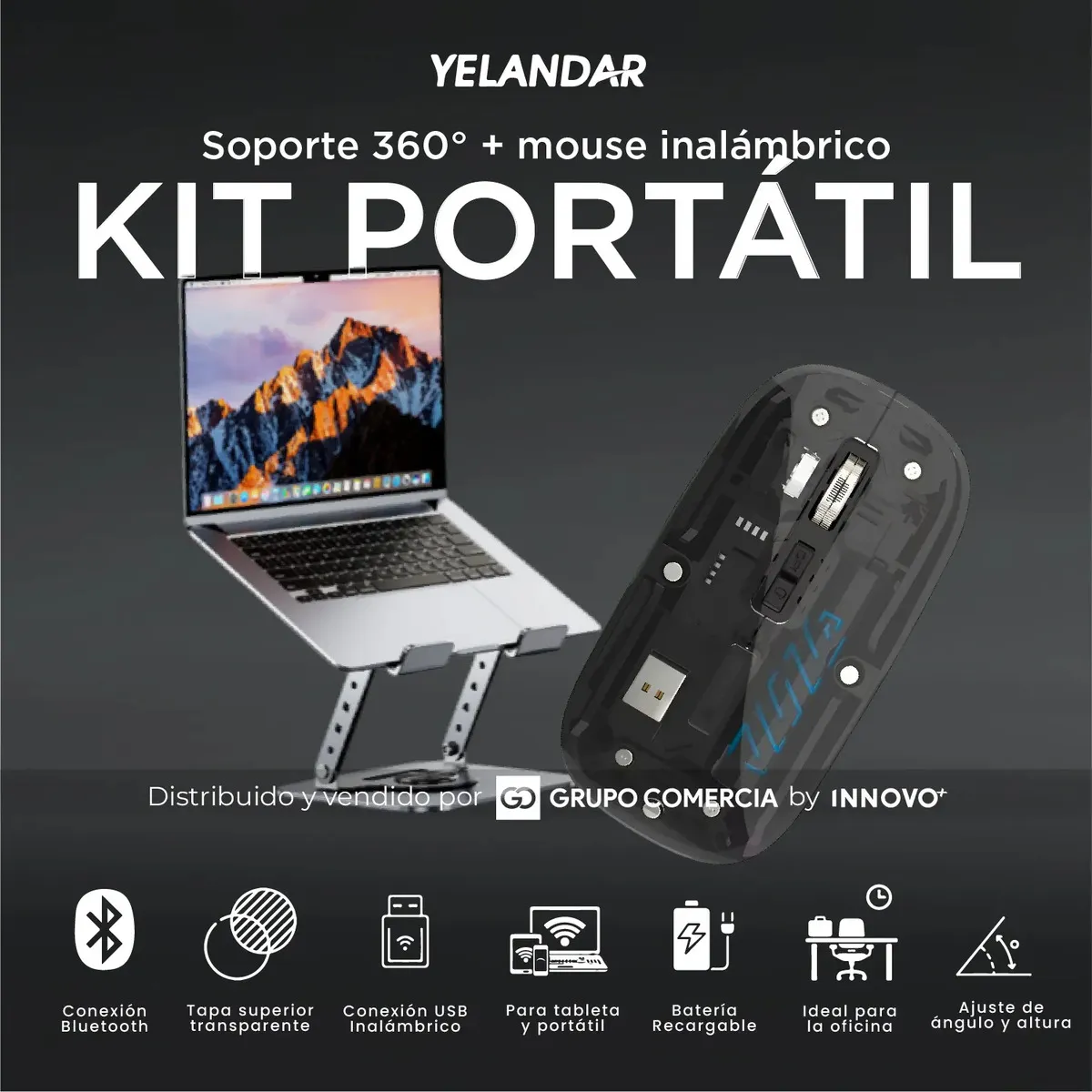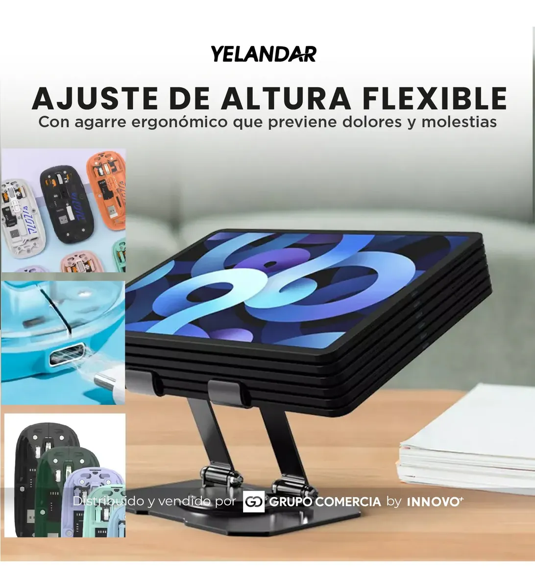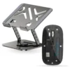 Soporte Giratorio 360° (Acero y Aluminio): Olvídate de mover toda la base. Su eje rotatorio te permite compartir pantalla en segundos. Fabricado en una aleación de aluminio y acero al carbono de alta resistencia, soporta tu laptop o tablet con total estabilidad mientras su diseño ventilado evita el sobrecalentamiento.