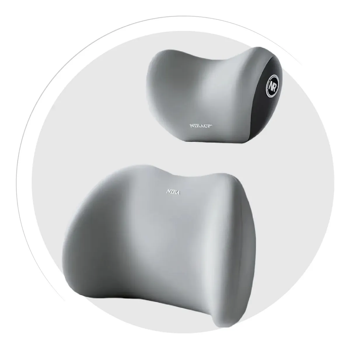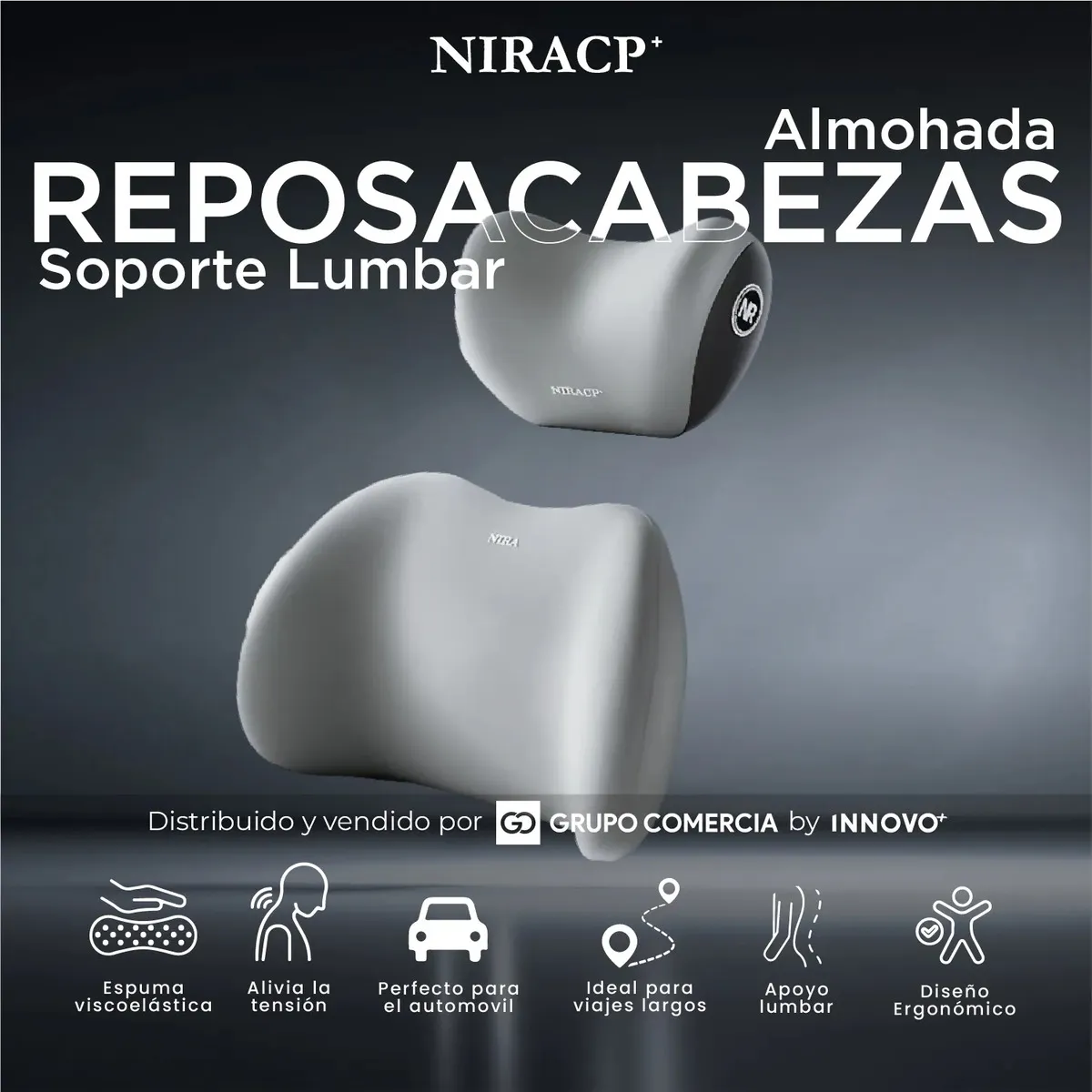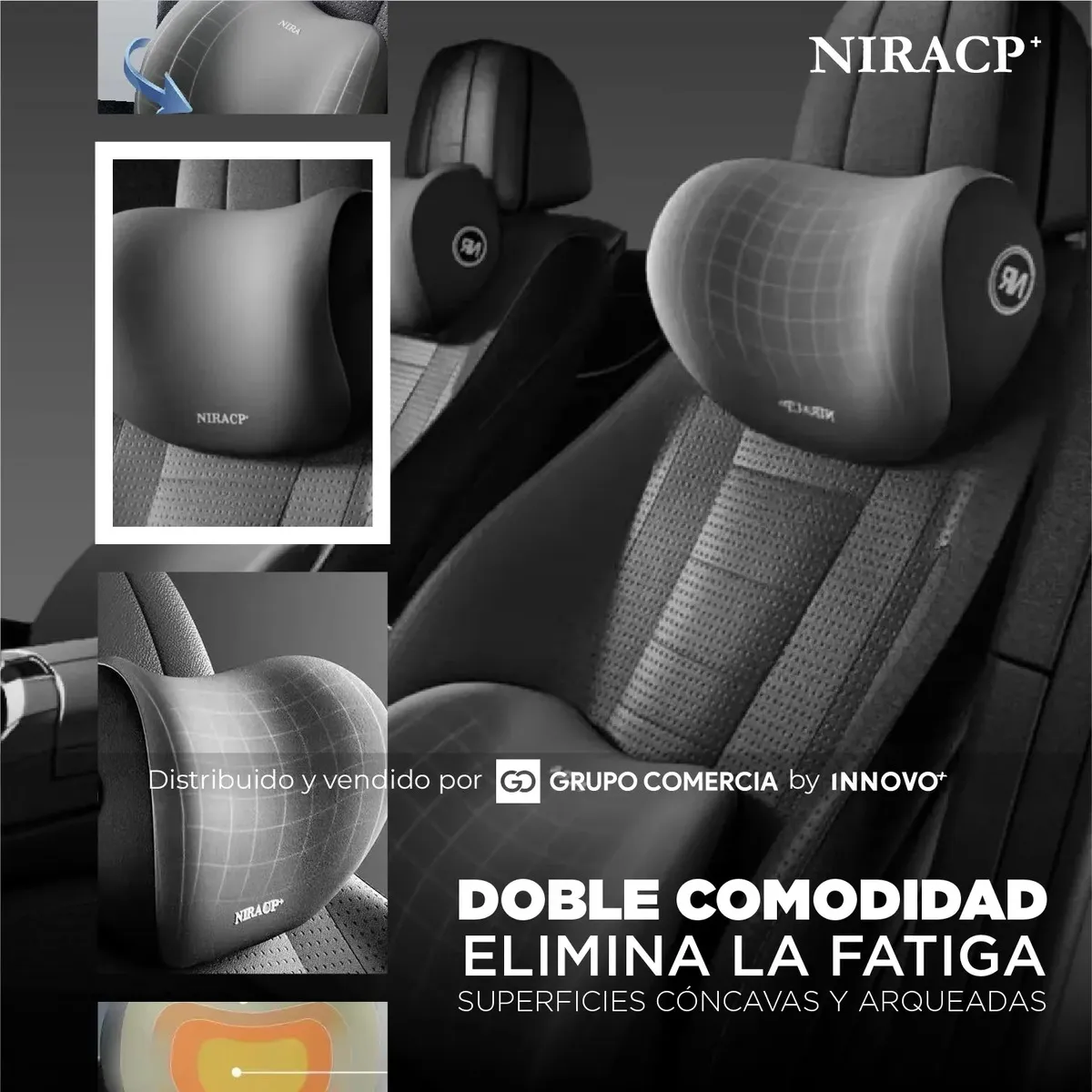 Terminas tus viajes con dolor de espalda y tensión en el cuello? Transforma tu asiento en una experiencia de primera clase con el Set de Confort Total NIRACP+.