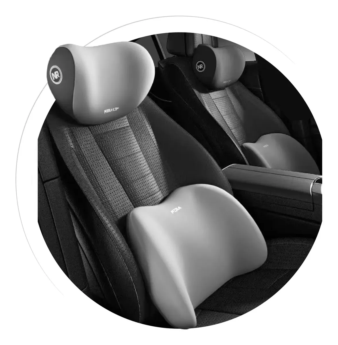 Diseñado científicamente para abrazar la curvatura natural de tu columna, este kit de soporte lumbar y reposacabezas elimina la fatiga acumulada tras horas frente al volante.
