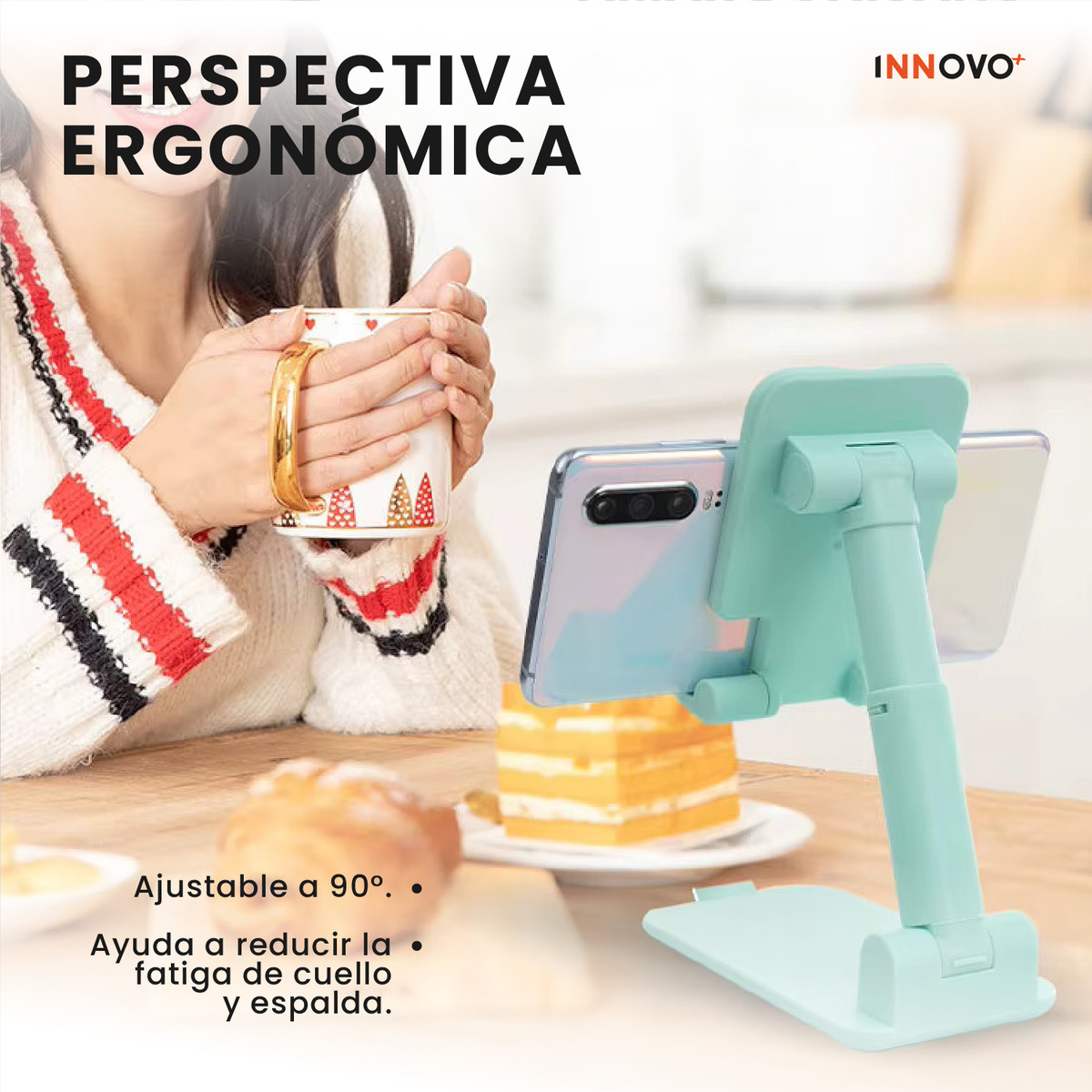 Fabricado con materiales resistentes y un diseño ergonómico, reduce la fatiga de cuello y espalda al mantener tu dispositivo en el ángulo perfecto. Además, su portabilidad te permitirá llevarlo a todas partes sin ocupar espacio.