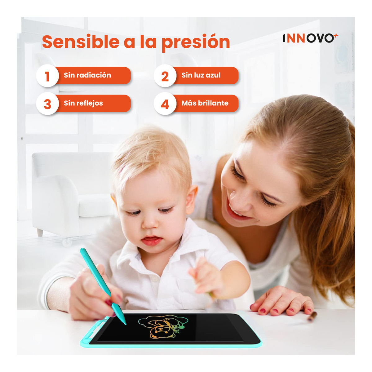 Con función de borrado fácil y pantalla segura para los más pequeños