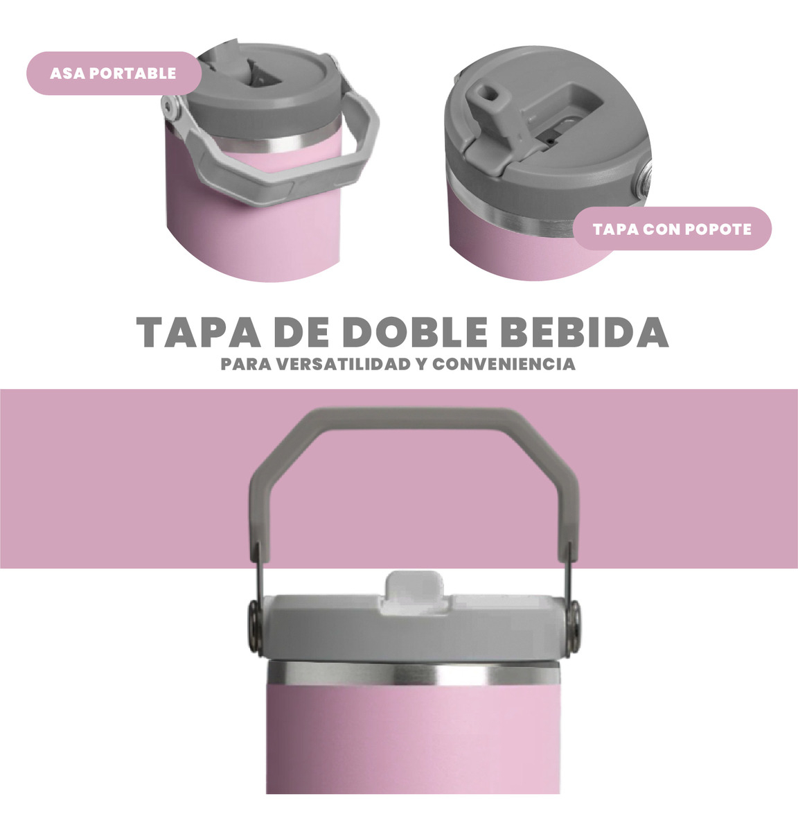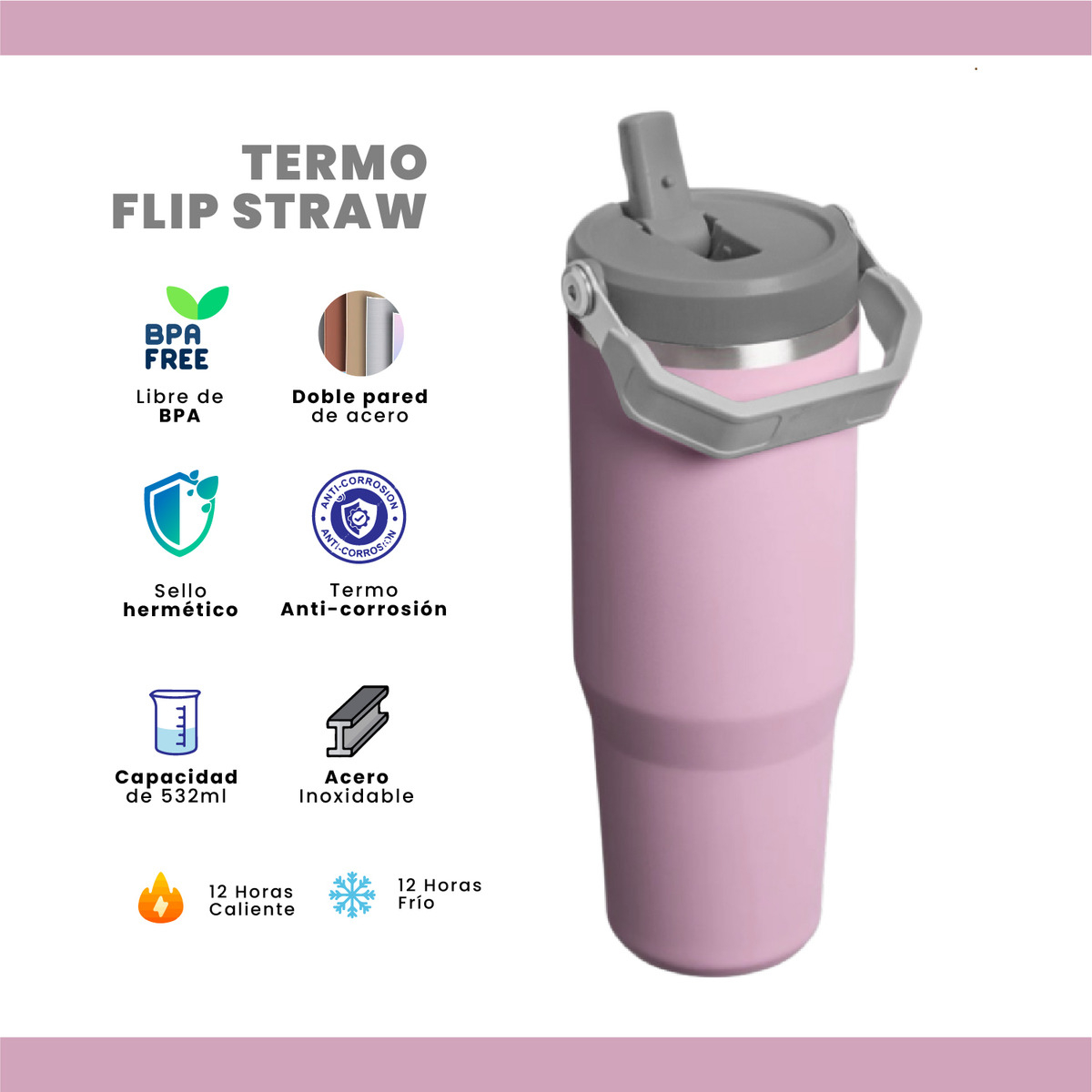 Termo Acero Inoxidable 900ml Flip Straw Antiderrames Frio Calor Lila