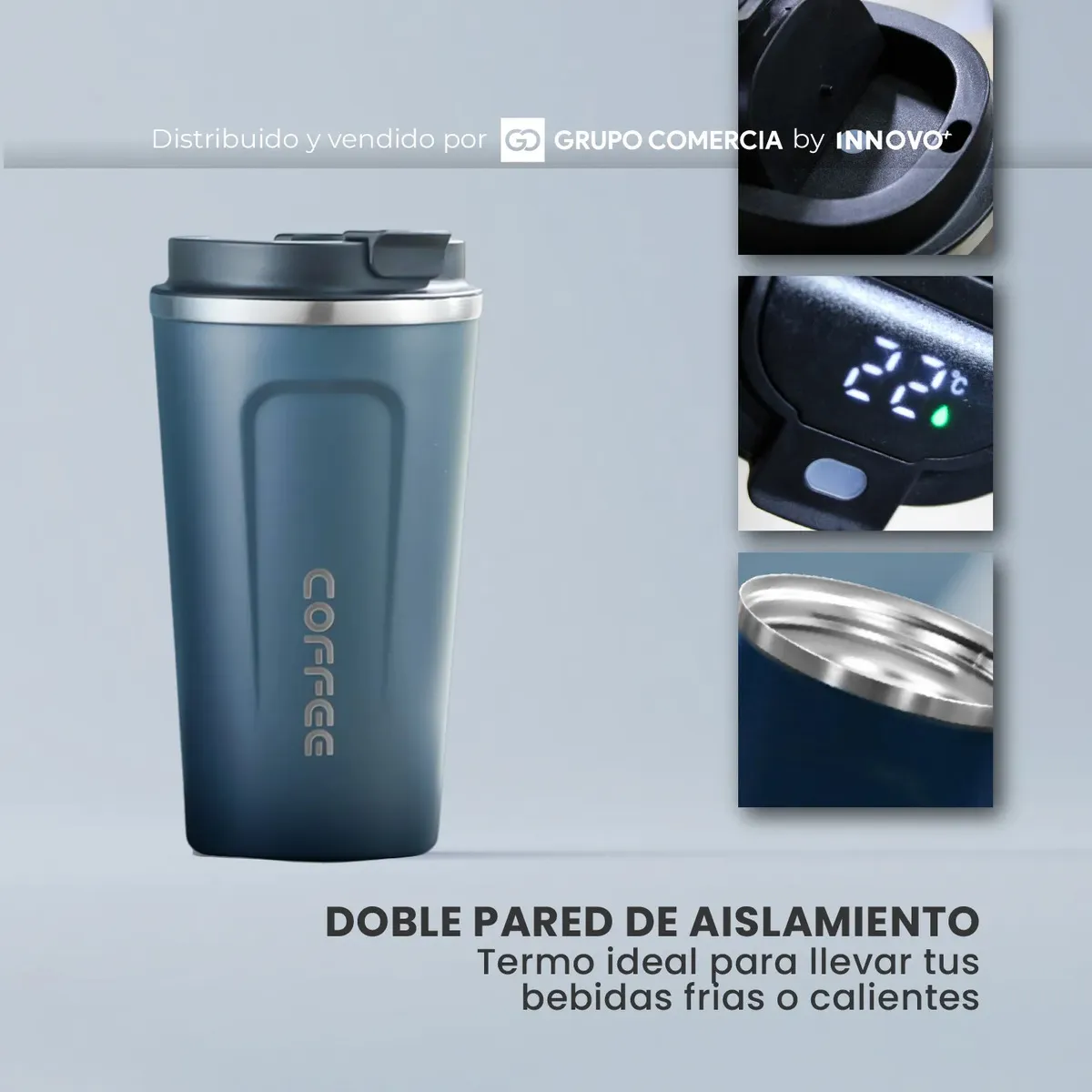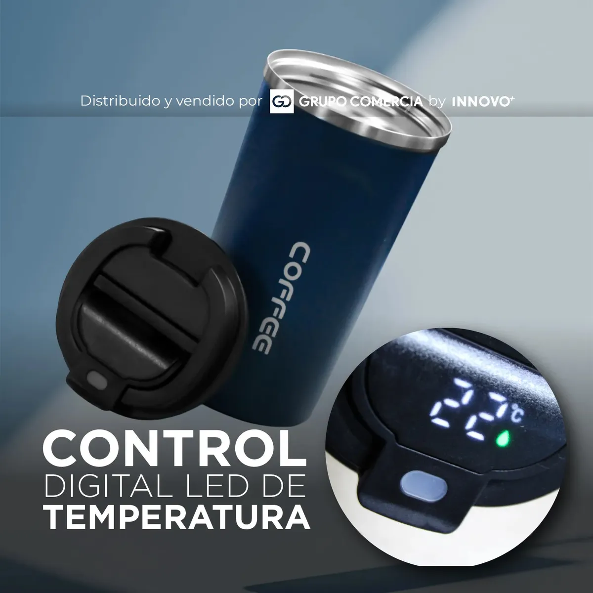 Control Digital en Tiempo Real: Olvídate de las suposiciones. Su tapa inteligente cuenta con una pantalla LED táctil que te indica la temperatura exacta de tu bebida al instante.