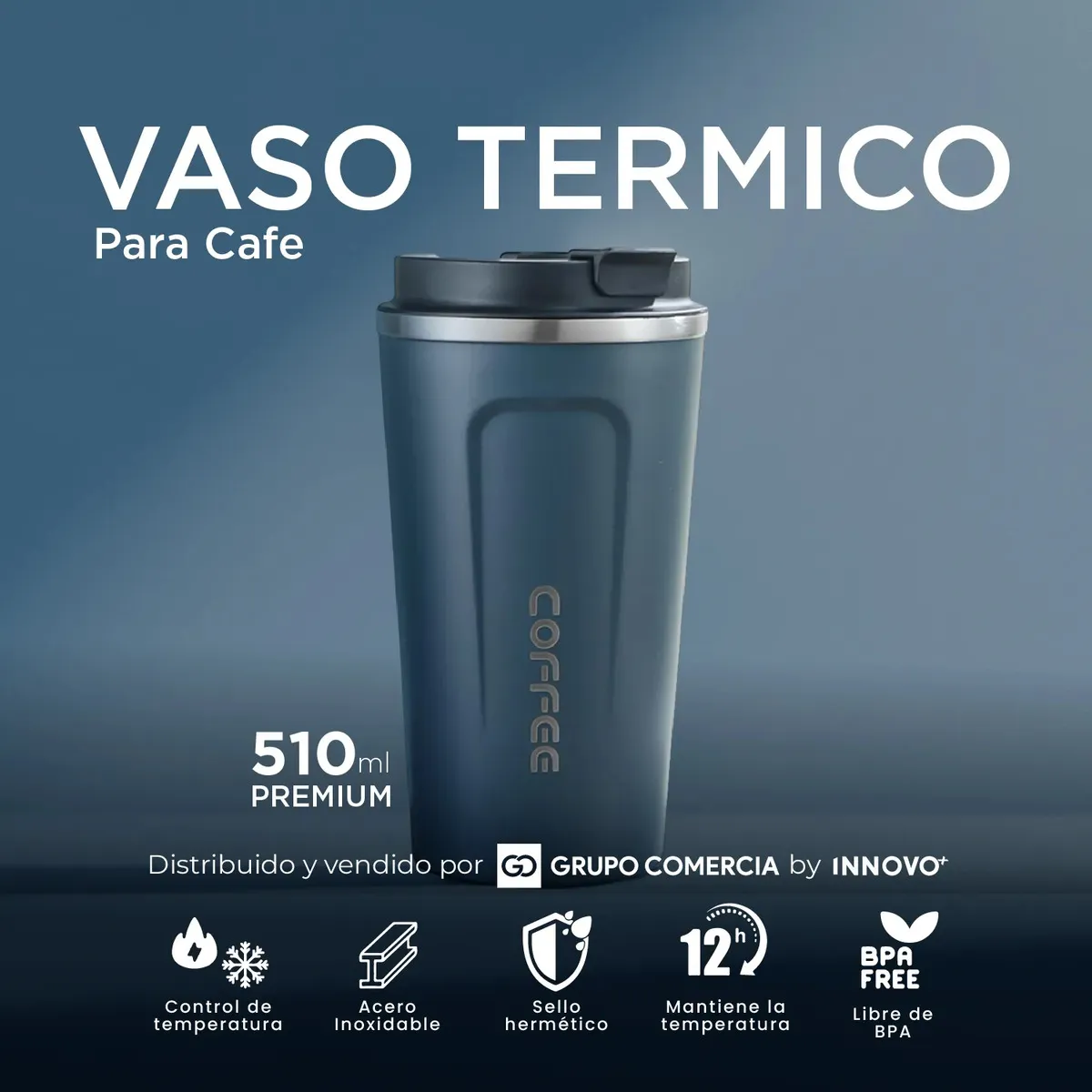 Rendimiento Térmico Superior: Gracias a su tecnología de doble pared de acero inoxidable, mantiene tus bebidas calientes o refrescantemente frías hasta por 12 horas.